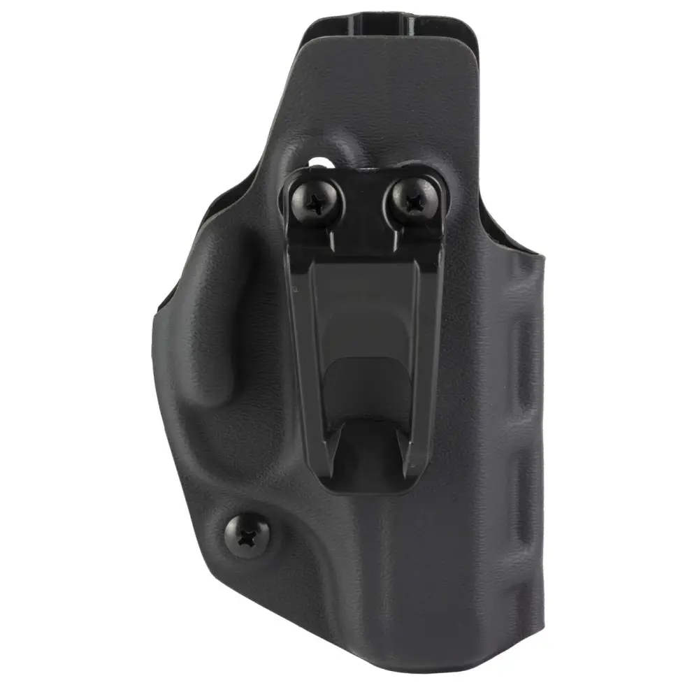 This holster offers ambidextrous carry and a full range of cant adjustment which ensures the user can find their preferred carry position. Constructed with .080 KYDEX, the holster delivers the perfect blend of rugged durability and thin, low profile design required for EDC IWB use. The proprietary clip is made of a high strength polymer that can be used on a variety of clothing styles, so no occasion or attire impedes ones ability to carry. Concealment is enhanced by the subtle Trigger Bump which helps angle the grip of the pistol back towards the body in all carry positions. All COVERT series holsters feature optic compatibility and user-adjustable retention.