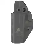This holster offers ambidextrous carry and a full range of cant adjustment which ensures the user can find their preferred carry position. Constructed with .080 KYDEX, the holster delivers the perfect blend of rugged durability and thin, low profile design required for EDC IWB use. The proprietary clip is made of a high strength polymer that can be used on a variety of clothing styles, so no occasion or attire impedes ones ability to carry. Concealment is enhanced by the subtle Trigger Bump which helps angle the grip of the pistol back towards the body in all carry positions. All COVERT series holsters feature optic compatibility and user-adjustable retention.
