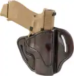 1791's BH2.1, this Open Top Multi-Fit Belt Holster works well firearms from FNX, Colt, Beretta, Browning, FN, Glock, H&K, Kimber, Ruger, Sig Sauer, S&W and Springfield. This outside-the-waistband belt holster will hold your firearm snug to your body offering reliable and comfortable carrying all day long. Features and open top design for quick draw, multi-fit design with reinforced stitching that's handcrafted to accommodate a wide range of firearms. Includes a strong beveled steel clip for comfort and the safest retention.