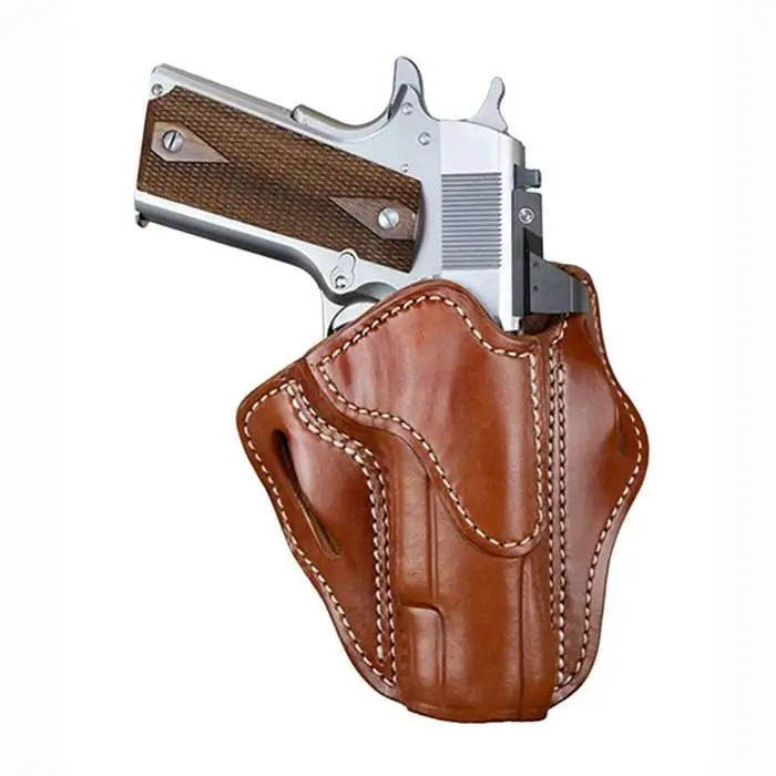 Optic Ready Belt Holsters are built to mold perfectly to your handgun. Their optic cut, tall sweat guard and open bottom design accommodates threaded barrels and protects your firearm. Fits- 1911 4"- 5" up to Half Rail; Browning HP; Colt 1911 4" & 5"; Kimber 1911 5"; Rock Island 1911 4" & 5"; Sig Sauer 1911 4" & 5"; Springfield 1911 4" & 5" and similar frames.