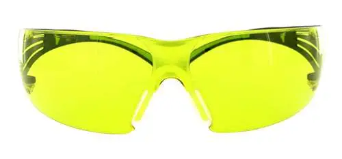SecureFit 400 protective eye wear is ideal for hunting/shooting sports done in different indoor/outdoor environments and lighting. Its low-profile, flexible temples are ideal for use with hearing protection. The contemporary, lightweight, wraparound lens design provides excellent coverage and good field of vision. They provide 99.9 percent UV protection and are polycarbonate with anti-fog coating. They have an ANSI rating of Z87.1-2010. The temple ear pieces are black with green accent.