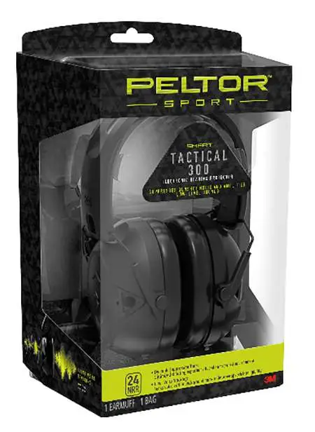 Peltor Sport Tactical Electronic Hearing Protector earmuffs have low-profile cups for rifle/shotgun use to suppress gunshot noise and amplify low sounds using proprietary 3M SMART technologies, and have an auto shut-off feature.