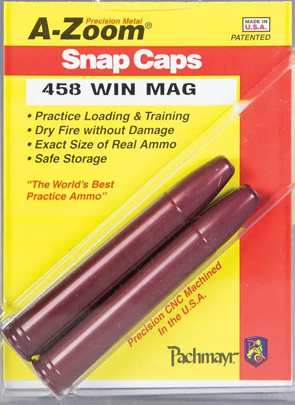 A-Zoom Rifle precision rifle snap caps are a perfect tool for adjusting and tuning your trigger pull, dry firing and smooth bolt cycling practice. CNC-machined from solid aluminum to precise cartridge dimensions, then hard-anodized for smooth functioning and long life. Each round has A-Zoom's durable "Dead Cap" proven to withstand over 3,000 dry fires while protecting the firing pin.