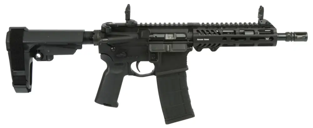 The Adams Arms P2 is a tactical, battle-ready model. It features an ergonomic free-float rail that covers the P-Series Micro Block piston system. The P2 utilizes flip-up sights, a flash hider, an ambidextrous safety selector and charging handle, and angle pistol grip. The P2 pistol features a tactical arm brace. This model has a 8" barrel, black finish, and an adjustable block.