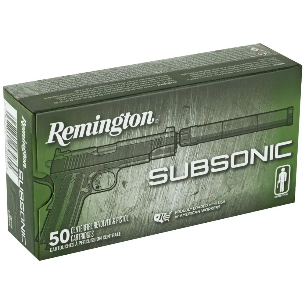 Remington Silencer Subsonic Ammo is the result of a joint development team comprised of Remington & AAC. Specifically designed for optimal performance when paired with a silencer with tight velocity control to eliminate supersonic cracks.