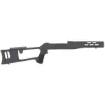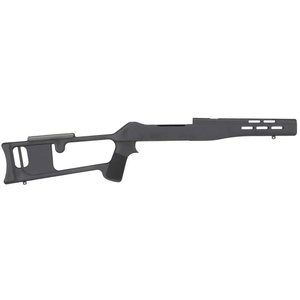 The Ruger 10/22 Fiberforce Stock by ATI features the lightweight Dragunov 22 design, made of Dupont Extreme Temperature glass-reinforced polymer, and is intended for use with open sights or a scope. Weighing only 26 ounces, this weatherproof stock features a ventilated forearm and handguard, a built-in cheekrest with a 3M Soft Touch cheekrest pad, and sling swivel studs. It fits most Roger 10/22 models, but will not accommodate rifles equipped with bull barrel.