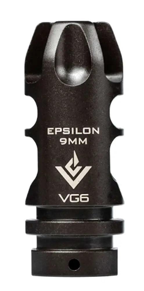 The VG6 EPSILON 9mm sets a new standard when it comes to recoil management by virtually eliminating any muzzle movement. This combination muzzle brake/compensator/flash hider is matched only by the amazing look of this device. Three extended flash hiding prongs help minimize muzzle flash providing the operator an uninhibited view through optics or sights while porting design has been optimized for the pressures of 9mm. We have created a muzzle device that produces very soft, low-energy recoil that allows for quick, precise follow-up shots.