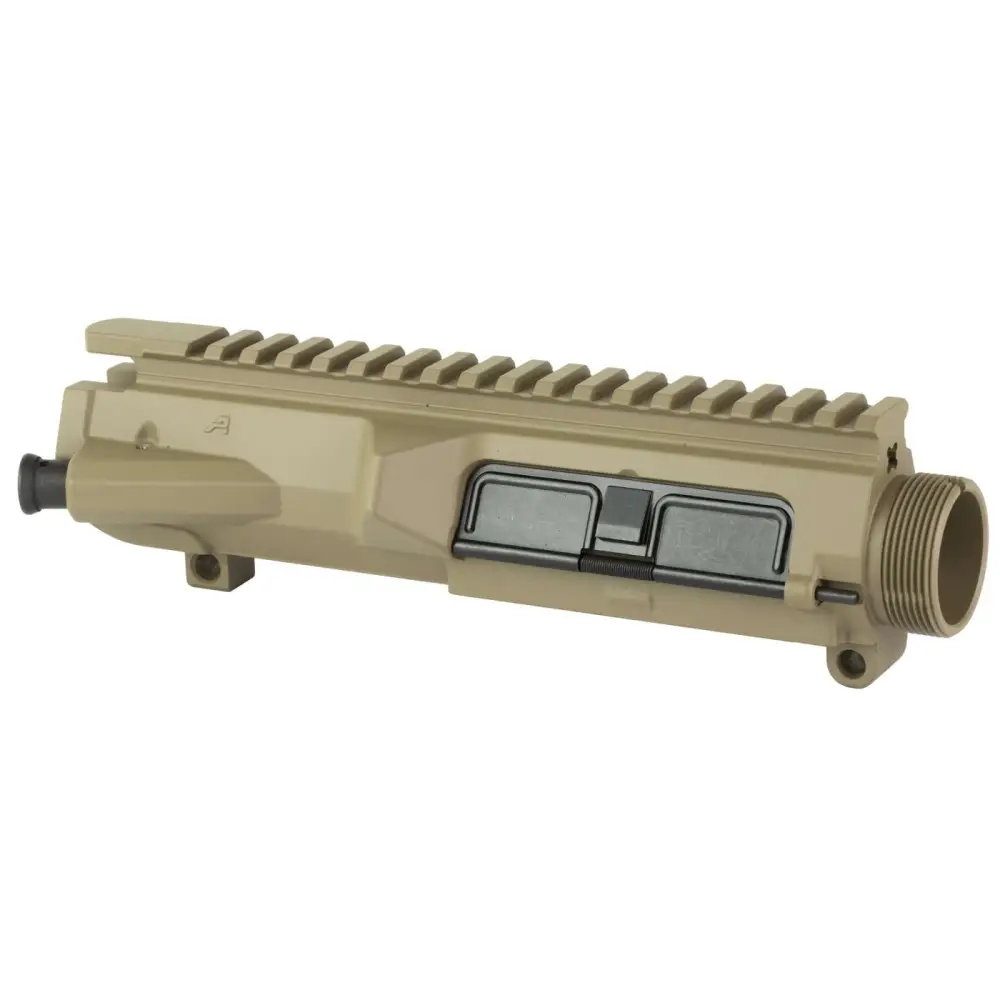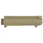 The M5 .308 Assembled Upper Receiver comes with both the port door and forward assist hardware preinstalled. Forged from 7075-T6 aluminum, this assembled upper is precision machined to accept standard .308 components and is the ideal upper for your big bore build. It includes M4 Feedramps, .2795 takedown pin holes (DPMS size), and DPMS High Profile (.210) Tang). This assembled upper receiver is finished in FDE Cerakote.