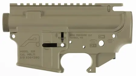 Aero Precision's AR-15 Stripped Receiver Set includes an AR-15 stripped upper Receiver and an AR-15 Gen 2 stripped lower receiver. The upper receiver features M4 feedramps, .250" takedown pin holes. The lower receiver features an upper tension screw, rear takedown pin detent hole threaded for a 4-40 set screw, flared magwell, and is marked "Cal Multi". It works with standard AR-15 components. Both the upper and lower receiver are machined from 7075-T6 forged aluminum.