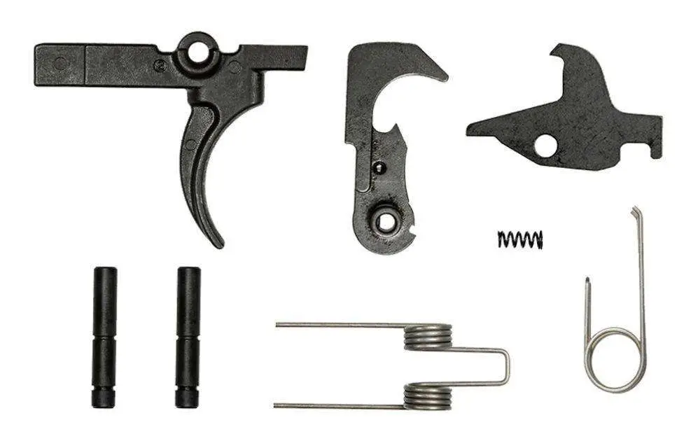 This kit gets you a mil-spec standard Fire Control Group to quickly add to your AR15 or AR 308 build and get shooting on the range.Kit includes-Trigger/hammer pin, Trigger spring, Hammer spring, Disconnector spring, Hammer, Trigger and Disconnector.