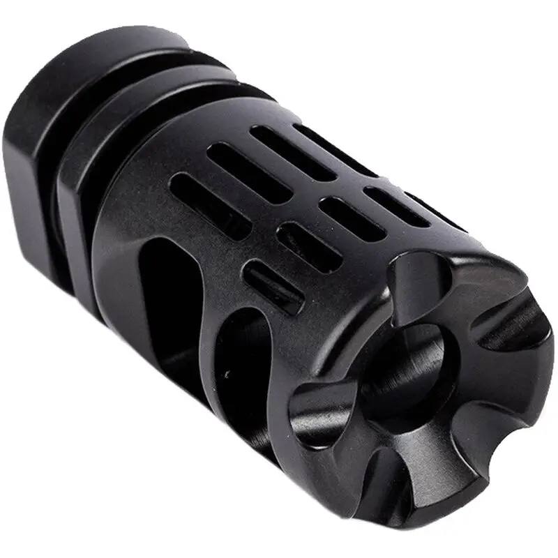 The VG6 Gamma is a muzzle brake and compensator hybrid that virtually eliminates recoil and minimizes muzzle movement. Its unique chamber geometries give it a very soft feel in the shoulder and the gas ports dimensions have been strenuously tested to give the utmost control to the muzzle. This model is constructed of 17-4 stainless steel with a black nitride finish and 5/8x24" tpi threads. It is compatible with 300 Blackout caliber.