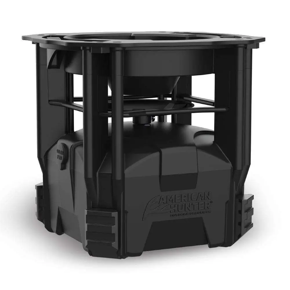 The Econ Feeder Kit from American Hunter features a compact and efficient design. It has a metal spin plate, built in varmint guard, and a rail mount for any additional accessories. It also uses a solar panel accessory plug in and is AA batter operated. The EZ-Touch digital timer has 1-4 custom time setting, 1-30 second run times, and reverse polarity protection.