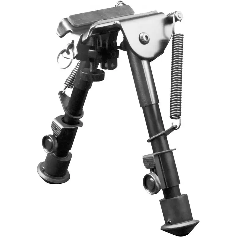 The H-Style spring tension bipod is ideal for quick withdrawal. It locks securely with multiple points of adjustment, and clamps to the common sling studs on most sporting rifles. An additional sling stud is integral with the design, allowing the shooter to use their sling.