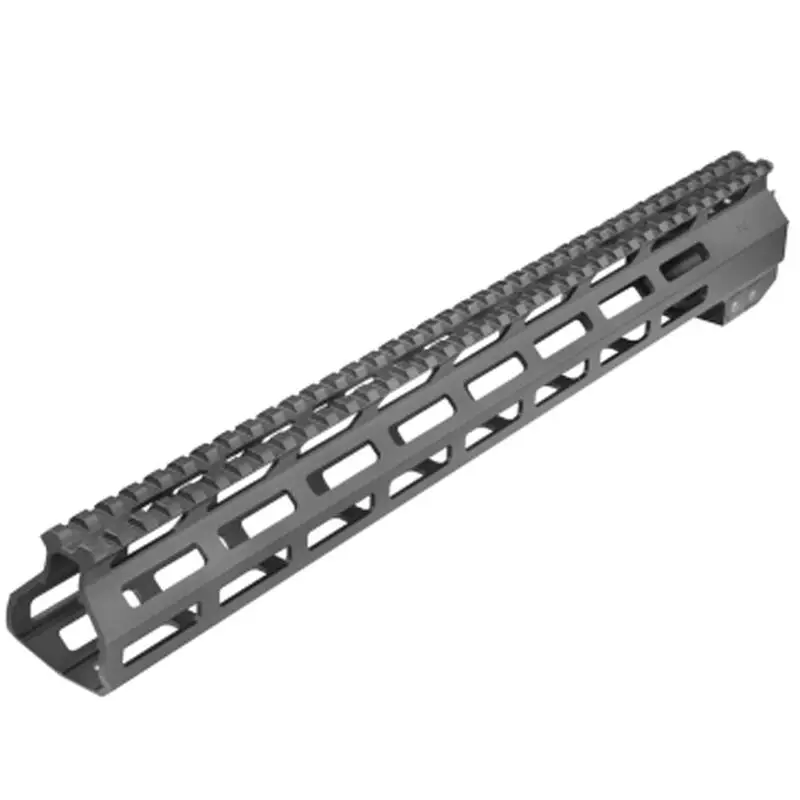 Aim Sports AR10 free-float handguard has been built to provide rugged, reliable performance. Designed with advanced shooter in mind, this handguard is sleek and ergonomic in the hand, which translates into faster on target performance and ease of use. It features seven panels of M-Lok mount-ability, built-in anti-rotation indexing and proprietary designed steel mounting hardware to ensure easy rock solid installation. The AR10 handguard is also compatible with DPMS style high profile upper receivers and is constructed of black hard coat anodized 6061-T6 aluminum with an ultra light 1913 rail. This low mount model is 15" long.