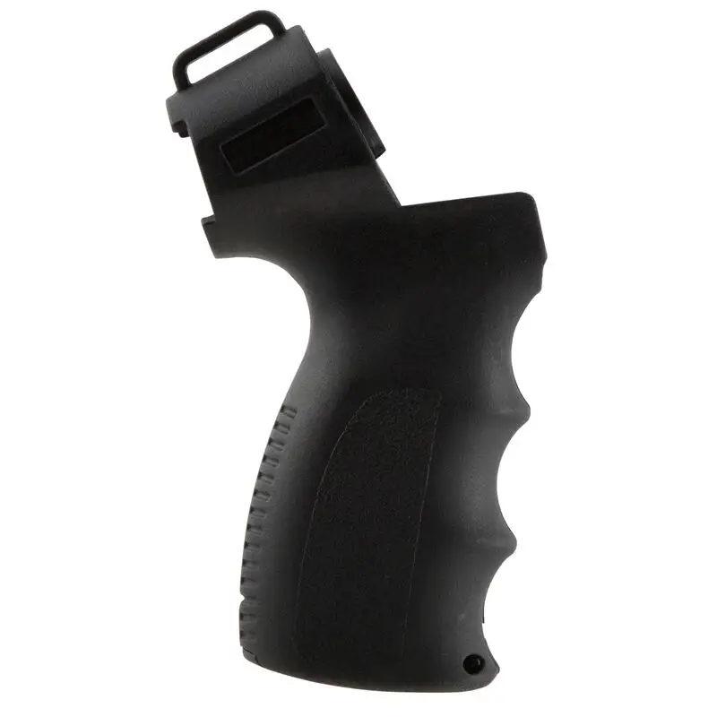 Aim Sports' Shotgun pistol grip is designed with modern squared shooting stances in mind. It features a durable polymer construction with an ergonomic design, side texturing, front and back serrations. The grip also has a drop-in fit, non slip base shelf, and accepts AR-15 buffer tubes.