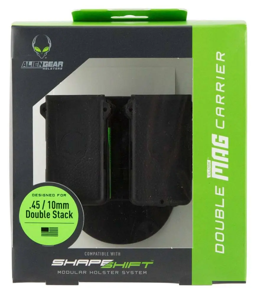 Carry your magazines with the compact and easy to use Cloak Double Mag Carrier. The Double Cloak Mag Carrier includes everything you need to carry one or two spare magazines outside-the-waistband (OWB) or inside-the-waistband (IWB). The Double Cloak Mag Carrier is capable of carrying every magazine holster bucket size we offer. Double Mag Carrier Features Built with a premium engineered polymer, our double magazine holder offers a full range of retention adjustment, allowing you the option to achieve the perfect level of retention for your spare magazines. To make these simple adjustments, just tighten or loosen the screws on your personalized magazine holster, includes everything you need to conceal or open carry two magazines at once. This Cloak Double Mag Pouch includes - 2 Magazine Buckets , 2 IWB Backers , 2 IWB Belt Clips, 2 OWB Wide Belt Clips, 1 Double Mag Attachment, 1 Paddle Attachment, 1 Belt Slide Attachment, 4 weld nuts and 4 cap screws . Every Double Magazine Holder is made proudly in America. Fit for .45 ACP/10 mm Double Stack.