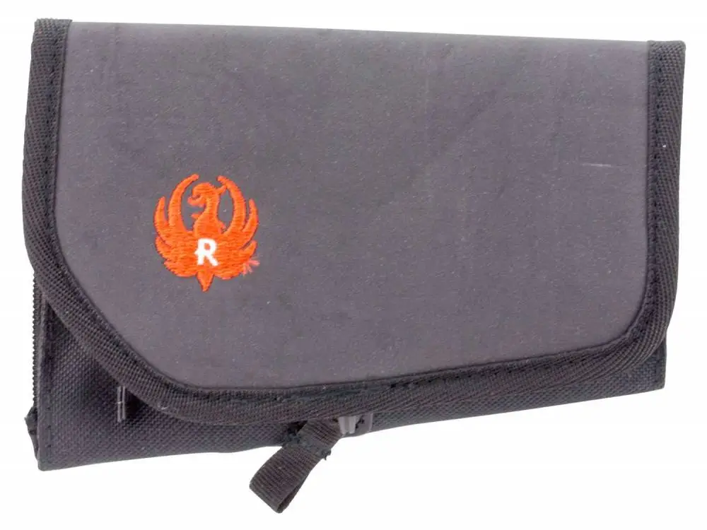 The Ruger branded Buttstock Cartridge Holder has a protective flap and a quiet, comfortable cover. This item holds 8 rifle cartridges.