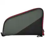 The Ruger Tucson Handgun Case case has a soft knit lining to protect your firearm from scratches. The case features a barrel protecting pocket, and an exterior storage pocket for your magazines and other small accessories. The handgun case is fully lockable inside. This 10" model has a black, gray and decorated with red accents.