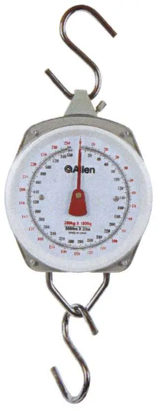 This item is a Sportsman's Scale from Allen Company. It has a weight capacity of 550 pounds and has a metal construction.