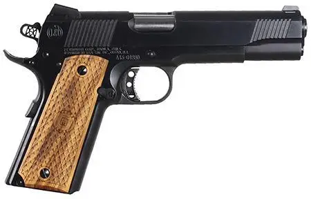 The Classic II, by American Classic, is a single action pistol with a Novak-style rear sight and a dovetail front sight. The Classic II features an extended slide stop, a beavertail grip safety, a combat hammer and trigger, an extended thumb safety, and a throated forged steel barrel. This model has a checkered hardwood grip with diamond cut checkering.