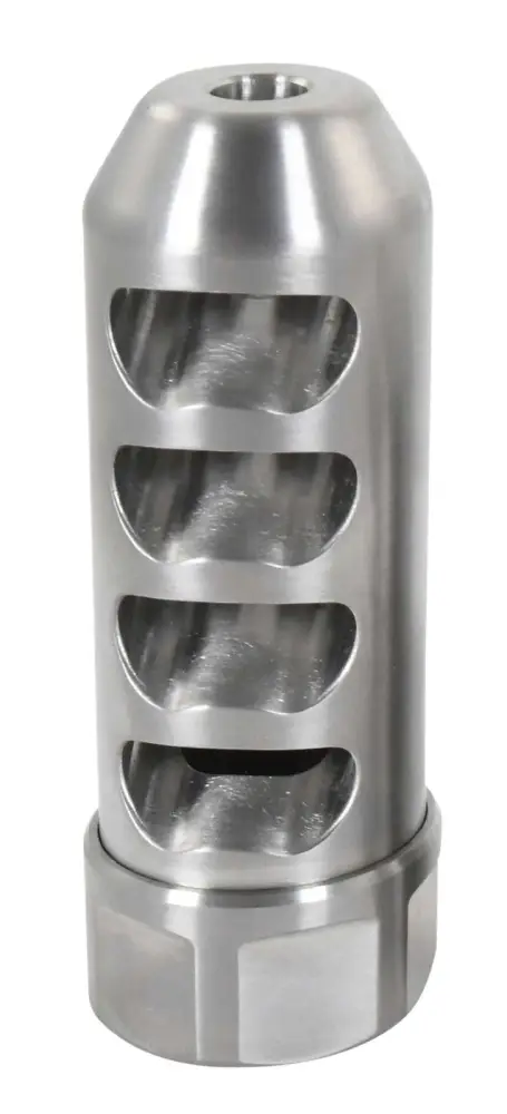 The Gen 2 Series of brakes features a nut that is a separate piece that allows you to install the brake at home. Installations take about 30 seconds and have no hideous crush washers or peel washers to deal with. It is precision machined out of high-grade stainless steel. This brake is meant for Larger barrels that are generally required by the 338 Lapua etc.