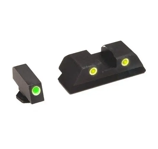 This model has green tritium with white outline, yellow tritium with white outline rear, and a black frame. It is compatible with Glock 20/21/29/30/31/32/36/40/41.