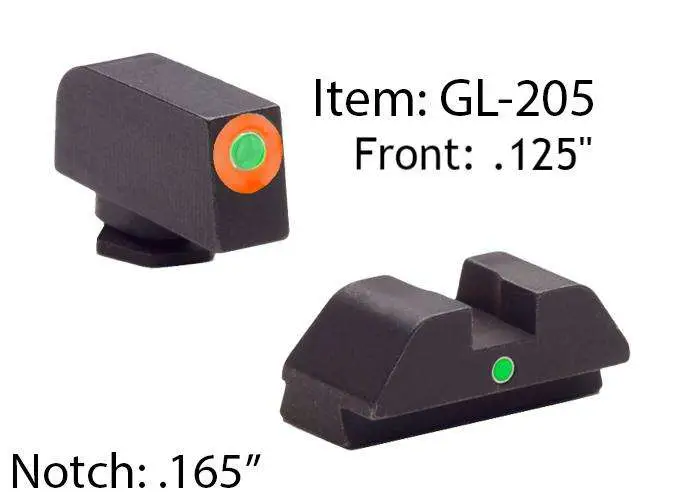 AmeriGlo GL205 i-Dot Night Sight Fits Glock 42/43 Tritium Green w/Orange Outline Front Steel Green Rear Black