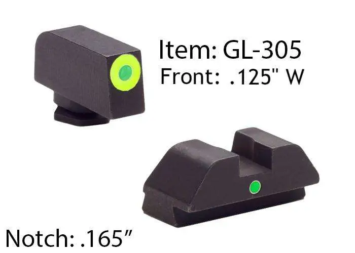 AmeriGlo GL305 i-Dot Night Sight Fits Glock 42/43 Tritium Green w/Lime Outline Front Steel Green Rear Black
