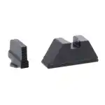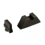 This model has a serrated wide front with a notch flat rear and black finish. It is compatible with all Glock models except 42/43.