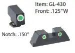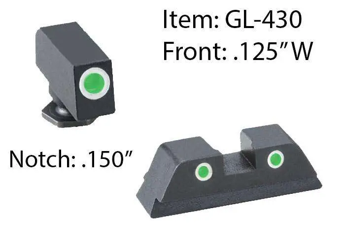 AmeriGlo GL430 Classic 3 Dot Night Sight Fits Glock 42/43 Tritium Green w/White Outline Front Tritium Green w/White Outline Rear