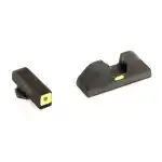 This model has a green tritium square with lime green outline front with a notch flat black rear that has a horizontal Lumi-line. It is compatible with Glock 42/43.