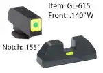 AmeriGlo GL615 CAP Night Sight Fits Glock 20/21 Tritium Green Tritium w/LumiGreen Outline Front Black w/Paint LumiGreen Rear
