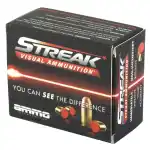 Streak's exclusive patented technology allows the shooter to visually see the projectile's path towards its target. Streak rounds are non-incendiary, they do not generate heat so they are safe to use in environments where traditional tracers are prohibited and can be a serious fire hazard. The results are game changing in many aspects for the consumer, law enforcement, and military. For indoor range use and nighttime shooting.