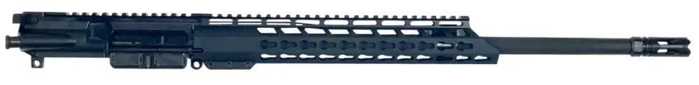 224 Valkyrie Complete Upper Assembly has a standard black Anodized receiver, A 4140 chromoly 18", 1:7, M4 medium contour, and threaded for 1/2x28 barrel. Muzzle device: Knight Stalker. Gas system: low Profile Steel Gas Block and Mid-Length Gas Tube. Handguard: Keymod 12", anodized black. Bolt carrier group: Standard 6.8 SPC 2, M16 Profile. Bolt: Mag Phosphate, 9310 Steel, MPI Tested. Carrier: Mag Phosphate, 8620 Steel, Staked Gas key. Charging handle: Standard, anodized black. Treatment: Non RF85.