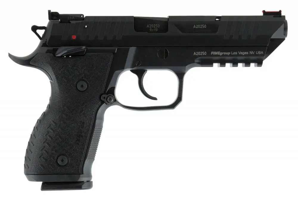 Arex's Rex Alpha pistol is a direct descendant of the Rex Zero 1. Its frame, slide, and cold hammer forged barrel are made from solid steel. It has fiber optic front sights, ambidextrous safety, full length slide rails, and a large trigger guard for the use of gloves. This model has a black nitrocarburized steel frame and slide, black polymer grips, and it includes three (3) 17-round magazines.