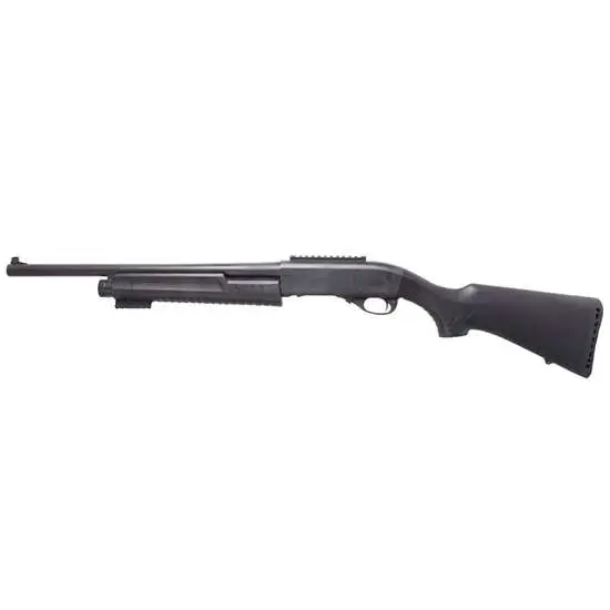 American Tactical's MB3 series of shotguns are perfect for home defense at an affordable price. It has a black synthetic stock, 18.5" barrel, and a 4+1 capacity. This MB3-R model features a receiver-mounted Picatinny rail for optics and a blade front sight.