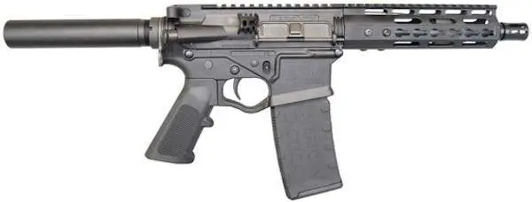This Omni Hybrid MAXX AR-Pistol features a 7.5" black nitride barrel, a metal reinforced polymer receiver with an black finish, 7" Keymod free-floating rail, and a black buffer tube.