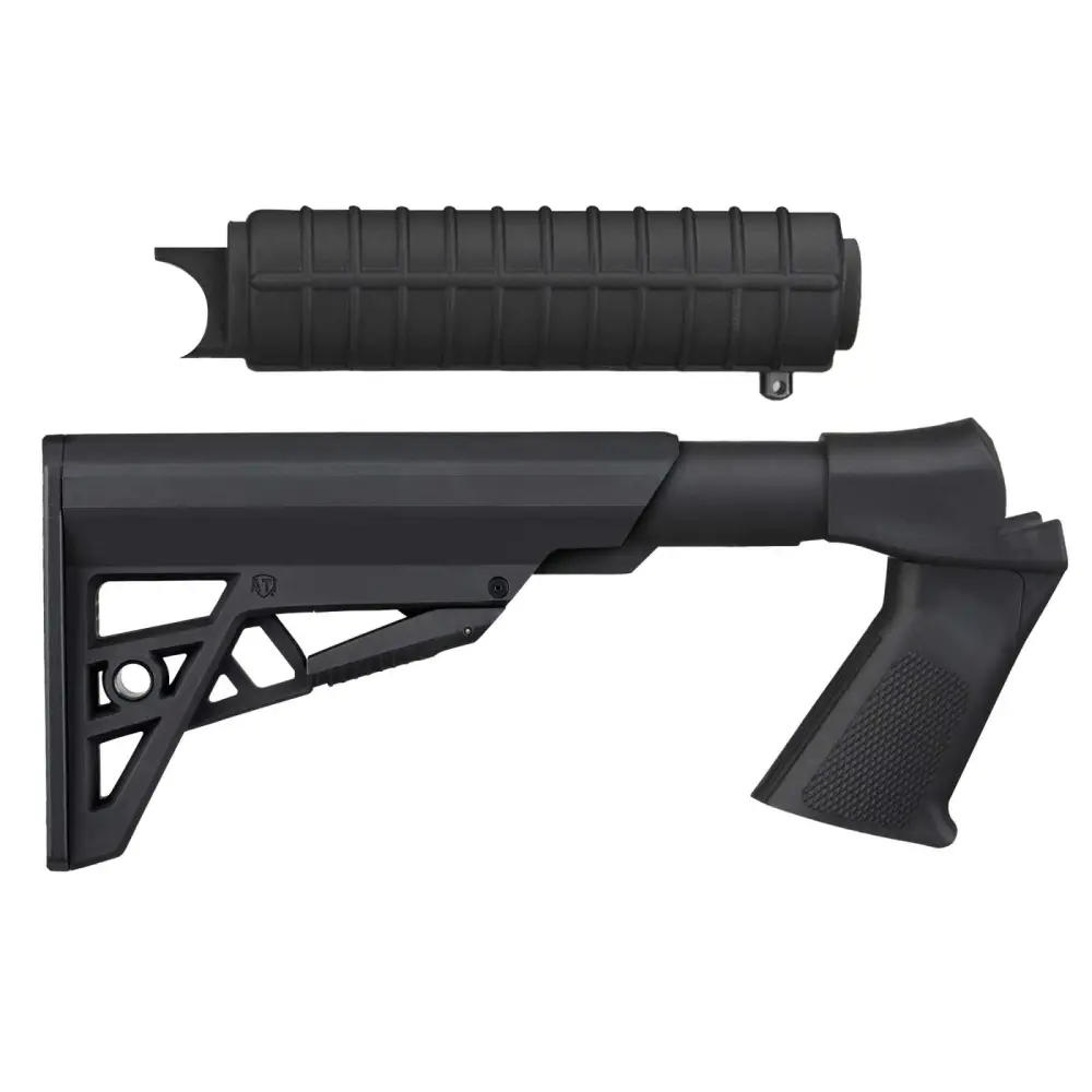 Stock with tactical forend collapsible, six position shotforce buttstock with pistol grip and forend combo is patterned after the AR-15 style assault rifle. The six position stock will accommodate multiple shooters of all sizes from youth to adult. Will not fit the H&R Pardner Pump.