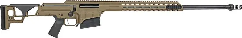 Barrett's MRAD adapts to a variety of user needs without sacrificing performance. With unfailing accuracy, this bolt-action system continues to define a whole new class of long-range precision rifles. It features a changeable barrel system that can be removed by simply loosening two bolts using a standard Torx wrench. Besides reducing maintenance and logistical burdens, this unique design allows for user level caliber interchangeability and serviceability with the MRAD rifle's barrel kits. The MRAD also features a fully adjustable match-grade trigger module, which is user accessible. The thumb-operated safety can be configured for left or right hand operation and its ambidextrous magazine release can be used intuitively while retaining a firing grip and cheek weld. Its forward receiver is drilled and tapped for accessory rails to be mounted at the 3, 6 and 9 o'clock positions.