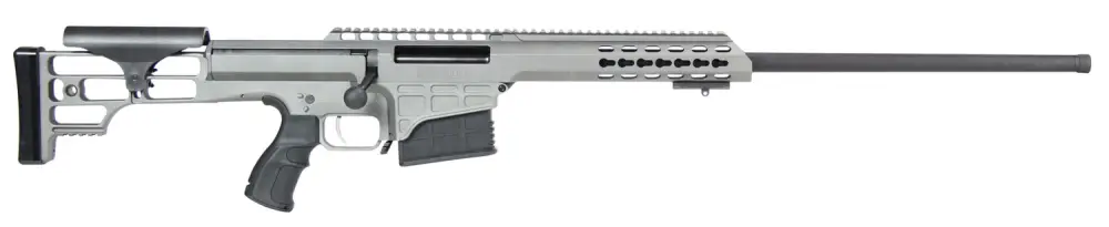 The Model 98B is entirely in a league of its own. This revolutionary precision rifle offers sub MOA long-range performance that others can only dream about. Its straight-line design, running from the highly efficient muzzle brake to the shooter's shoulder, tames recoil. It also allows for faster, more accurate follow-up shots fed from the 10-round detachable magazine. The ergonomic pistol grip reduces muscle fatigue and provides total control over the fully adjustable trigger. An intuitive, thumb-operated safety can be accessed without compromising the firing grip and allows the shooter to maintain a solid weld to the adjustable cheek piece. The oversized bolt handle can be easily manipulated, feeding a new round into the chamber as the bolt glides through a polymer guide. Its aluminum upper receiver boasts an M1913 optics rail, offering plenty of space to mount substantial optics as well as a night vision device or other accessories. The forward receiver is drilled and tapped for accessory rails to be mounted at the 3, 6 and 9 o'clock positions using KeyMod.