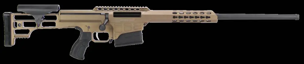 The Model 98B is entirely in a league of its own. This revolutionary precision rifle offers sub MOA long-range performance that others can only dream about. Its straight-line design, running from the highly efficient muzzle brake to the shooter's shoulder, tames recoil. It also allows for faster, more accurate follow-up shots fed from the 10-round detachable magazine. The ergonomic pistol grip reduces muscle fatigue and provides total control over the fully adjustable trigger. An intuitive, thumb-operated safety can be accessed without compromising the firing grip and allows the shooter to maintain a solid weld to the adjustable cheek piece. The oversized bolt handle can be easily manipulated, feeding a new round into the chamber as the bolt glides through a polymer guide. Its aluminum upper receiver boasts an M1913 optics rail, offering plenty of space to mount substantial optics as well as a night vision device or other accessories. The forward receiver is drilled and tapped for accessory rails to be mounted at the 3, 6 and 9 o'clock positions using KeyMod.