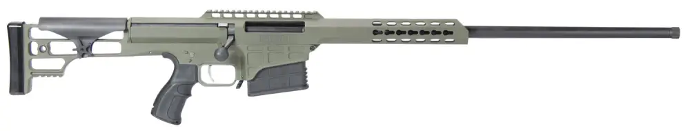 The Model 98B is entirely in a league of its own. This revolutionary precision rifle offers sub MOA long-range performance that others can only dream about. Its straight-line design, running from the highly efficient muzzle brake to the shooter's shoulder, tames recoil. It also allows for faster, more accurate follow-up shots fed from the 10-round detachable magazine. The ergonomic pistol grip reduces muscle fatigue and provides total control over the fully adjustable trigger. An intuitive, thumb-operated safety can be accessed without compromising the firing grip and allows the shooter to maintain a solid weld to the adjustable cheek piece. The oversized bolt handle can be easily manipulated, feeding a new round into the chamber as the bolt glides through a polymer guide. Its aluminum upper receiver boasts an M1913 optics rail, offering plenty of space to mount substantial optics as well as a night vision device or other accessories. The forward receiver is drilled and tapped for accessory rails to be mounted at the 3, 6 and 9 o'clock positions using KeyMod.