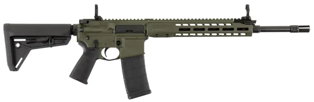 The REC7 combines the familiar ergonomics of the AR style rifle with a revolutionary short stroke gas piston operating system to create a rifle that runs cleaner and more reliably than traditional designs. The one-piece 17-4 stainless piston interfaces with a strike face that has been machined into the monolithic, anti-tilt bolt carrier. The TB-41 DLC coated, anti-tilt, full auto bolt carrier is machined from a solid block of 8620 steel with an integrated piston strike face. Both upper and lower receivers are forged from 7075-T6 aluminum, hardcoat anodized for durability, then finished with Cerakote for a perfect color match. The upper receiver and barrel extension feature M4 feed ramps for improved reliability, while the lightweight, free float handguard features a full-length M1913 Picatinny top rail with Magpul M-LOK accessory mounting slots at the 3, 6, and 9 o'clock positions. The REC7 piston vents excess gas forward at its patented chrome-lined, fluted gas block, resulting in cleaner, cooler, lower-maintenance operation. It also allows the user to access the piston assembly for maintenance via the front of the rifle without requiring removal of the hand guard or barrel.