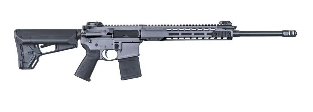 The REC7 combines the familiar ergonomics of the AR style rifle with a revolutionary short stroke gas piston operating system to create a rifle that runs cleaner and more reliably than traditional designs. The one-piece 17-4 stainless piston interfaces with a strike face that has been machined into the monolithic, anti-tilt bolt carrier. The TB-41 DLC coated, anti-tilt, full auto bolt carrier is machined from a solid block of 8620 steel with an integrated piston strike face. Both upper and lower receivers are forged from 7075-T6 aluminum, hardcoat anodized for durability, then finished with Cerakote for a perfect color match. The upper receiver and barrel extension feature M4 feed ramps for improved reliability, while the lightweight, free float handguard features a full-length M1913 Picatinny top rail with Magpul M-LOK accessory mounting slots at the 3, 6 and 9 o'clock positions. The REC7 piston vents excess gas forward at its patented chrome-lined, fluted gas block, resulting in cleaner, cooler, lower-maintenance operation. It also allows the user to access the piston assembly for maintenance via the front of the rifle without requiring removal of the hand guard or barrel.