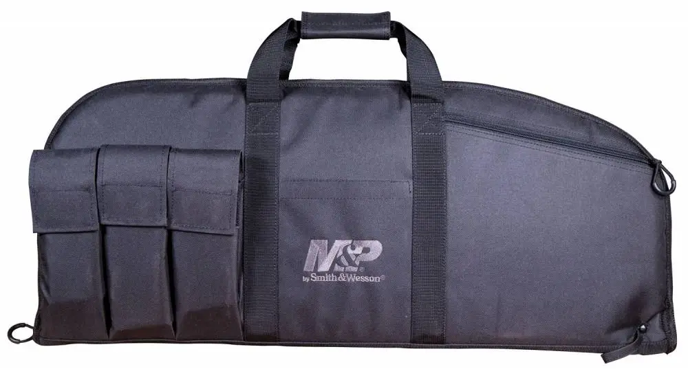Carry with confidence using the Smith & Wesson M&P Duty Series 29" Gun Case. With its durable ballistic fabric construction, heavy-duty carry handles and adjustable shoulder strap this case is ready for the roughest situations. Have plenty of room for storage of targets and extra magazines by utilizing the 3 magazine pouches and external center-open pocket. Not only is this bag well equipped to pack supplies, but it also features a full-length zipper for easy rifle access and generous padding for maximum gun protection, making it the perfect bag for any shooter.