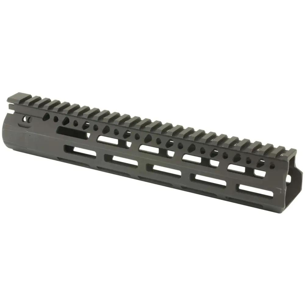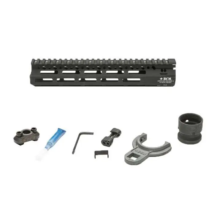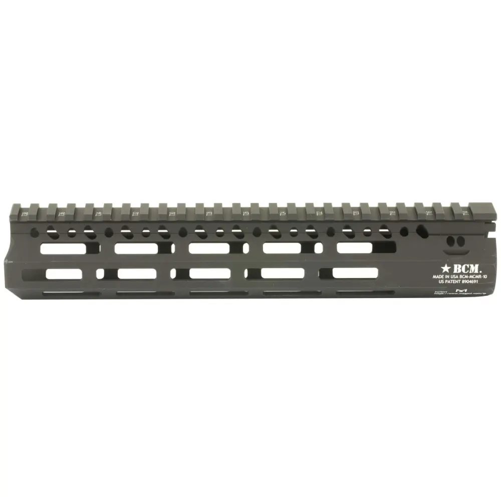 The BCM MCMR is a free float handguard that eliminates loads from the barrel, reducing the deflection for more accurate shooting. The MCMR features a M-Lok compatible mounting system, a steel barrel nut to resist movement under heat, and has a black hard coat anodized finish. This handguard is 10".