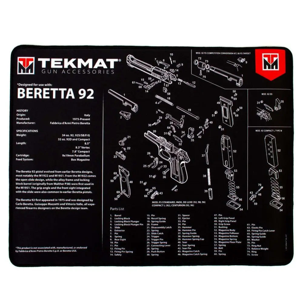 The Ultra 20 TekMat is large enough to handle a fully disassembled handgun with room to spare for tools and accessories. The extra thick .25 padding not only provides a premium feel and high level of quality but it offers extra protection from any rough handling or drops while working on your firearm. The ultra-soft, oil and water-resistant surface helps protect your firearm from scratches while the diagrams and illustrations help with cleaning, disassembly and are just plain fun to look at.