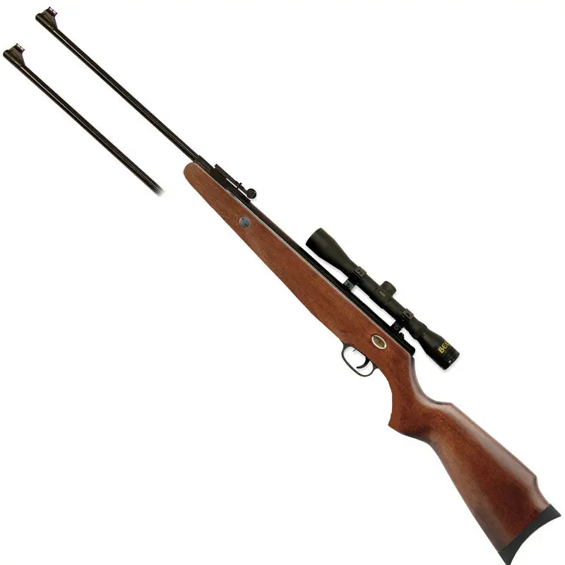 The Beeman Grizzly X2 Gas Ram Dual Caliber Air Rifle Combo w/4x32 scope is like getting 2 rifles for the price of one! Includes .177 caliber and .22 caliber barrels. Each barrel has a red fiber optic front sight and green fiber optic rear. The Beeman 4x32 scope will help get the most accuracy possible from the gun. Max velocity in .177 is 1000 fps, in .22 is 830 fps.