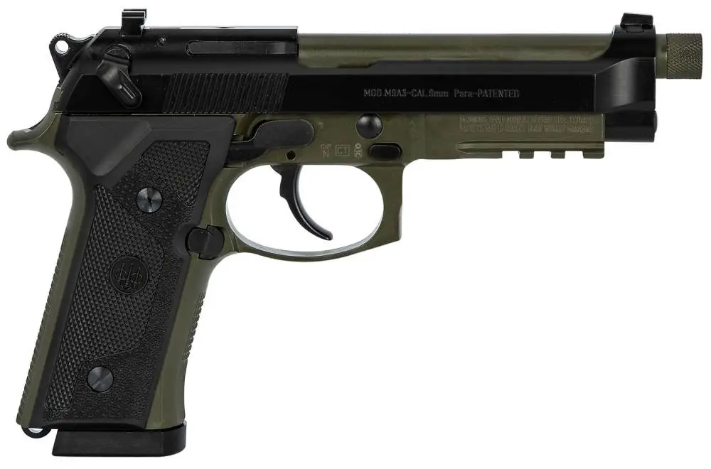 Beretta USA J92M9A3M1 M9A3 Italy Type F 9mm Luger Single/Double 5.20" TB 17+1 Black Polymer Grip Green Steel Frame Black Slide