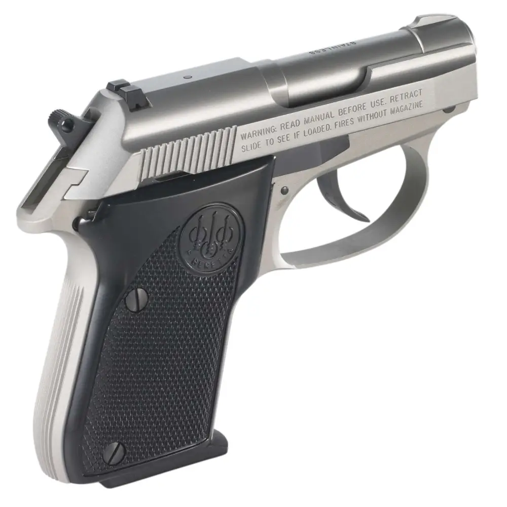 The 3032 Tomcat offers all the features of the 21 Bobcat, adding a wide slide and a contoured tang to protect the thumb web and increase pistol control. The snag-proof design and slide blade front sight permit quick presentation and fast target acquisition followed by smooth, crisp trigger pull in double/single action. The tip-up barrel allows direct chamber loading and safe clearing of the pistol. Jamming and stovepiping problems are virtually eliminated by the open slide design shared by all small frame Berettas. The Tomcat's barrel is forged from special high-strength steel; precisely rifled for accuracy. It has a black finish. The Inox Tomcat model has a stainless steel slide and barrel with an exceptionally corrosion-resistant and durable gray-anodized frame to match the color and finish of the stainless components. The trigger, hammer, safety, magazine and other metal parts are blued.
